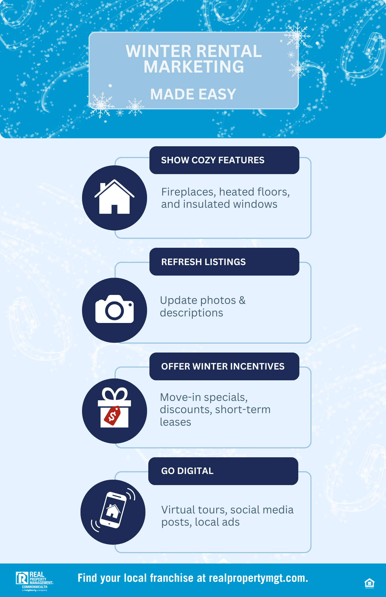 Need help keeping your properties filled this winter? Contact Real Property Management Commonwealth today to learn how our expert property management services can maximize your occupancy year-round.